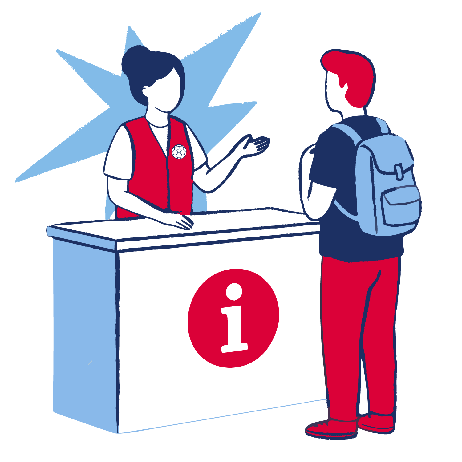 - Orienta a visitantes en zonas turísticas, sedes y eventos oficiales.